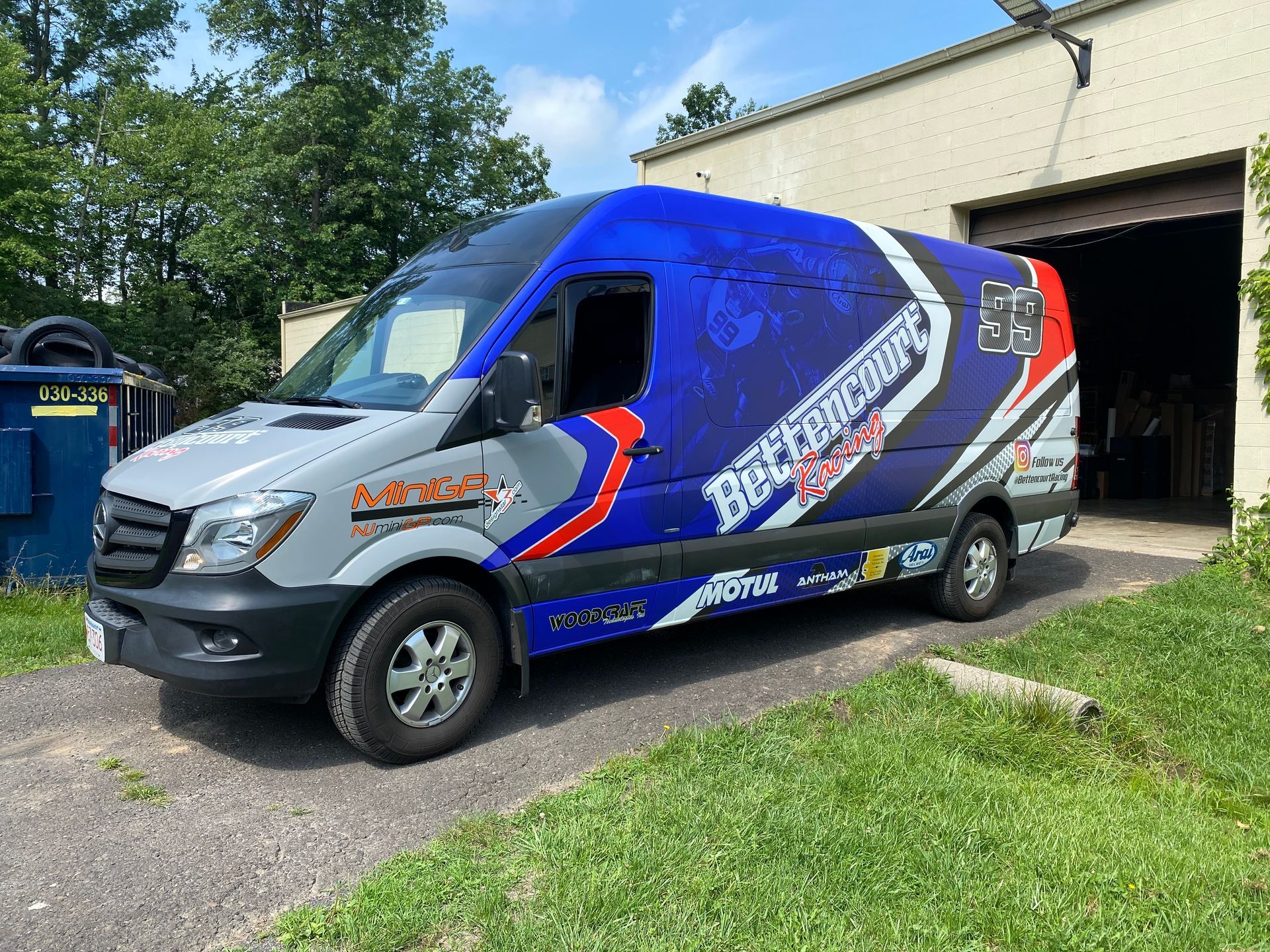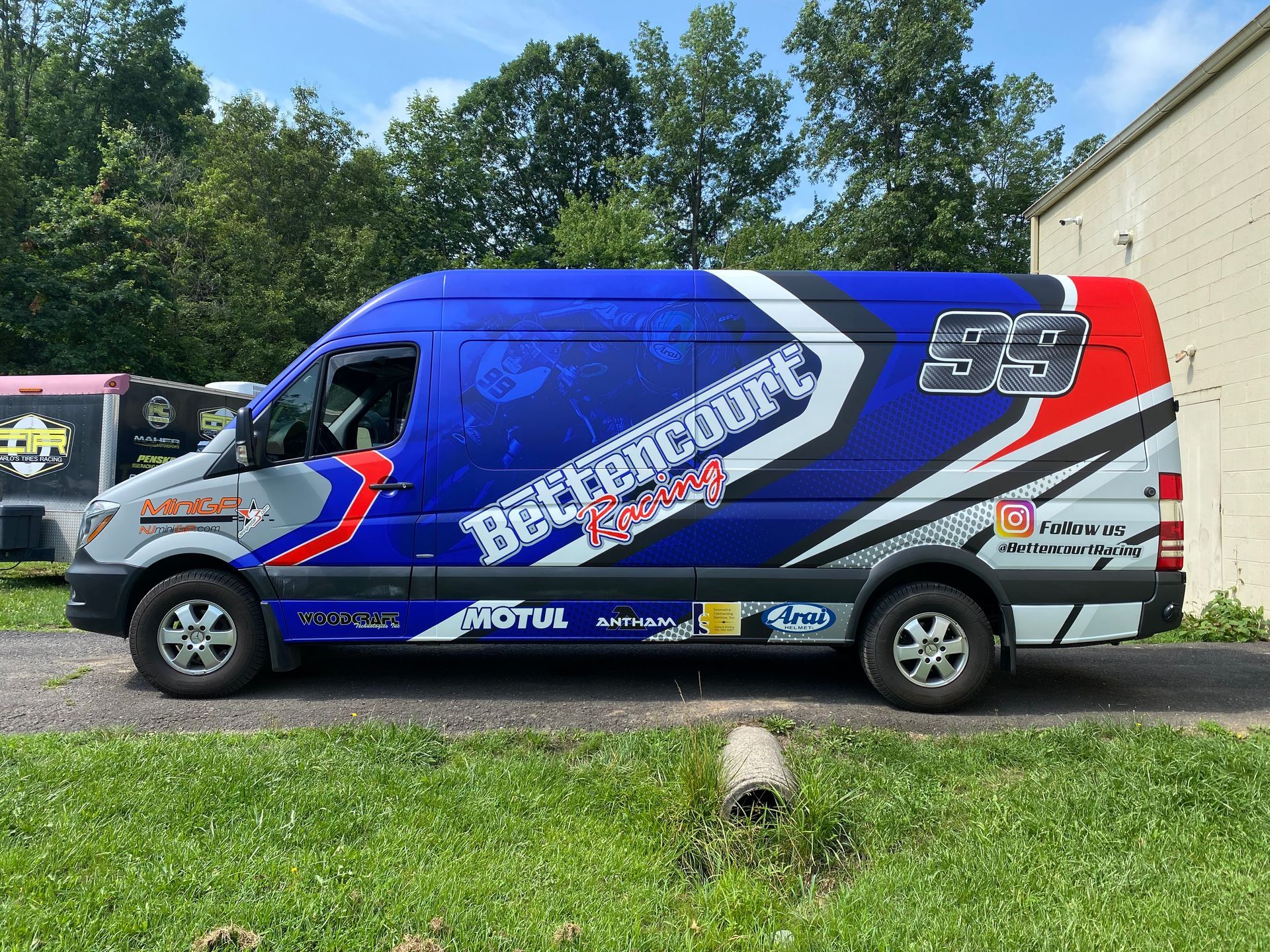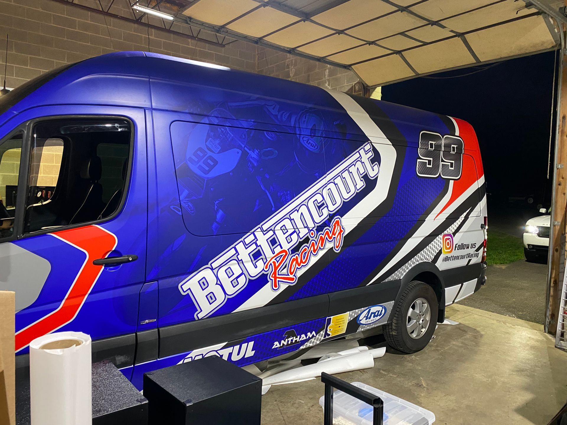 This was a cool wrap design for a motorcycle race team. This finished wrap was finished with a matte lamination for that unique touch.
