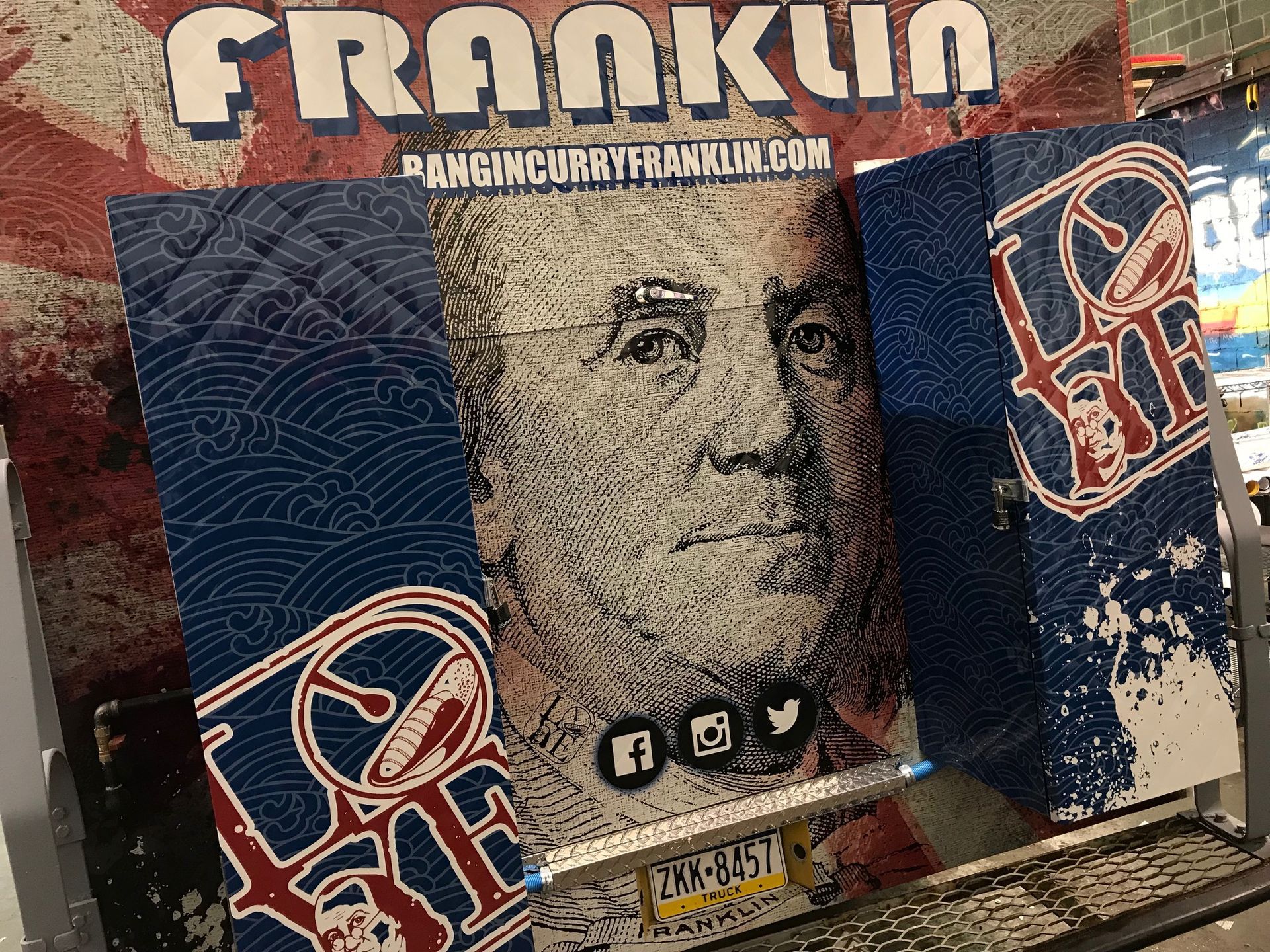Patterns, well this design has a bunch! From the bold grunge, to the subtle paper texture. We love the Philly feel of the art "Franklin" and the LOVE logos stand out.