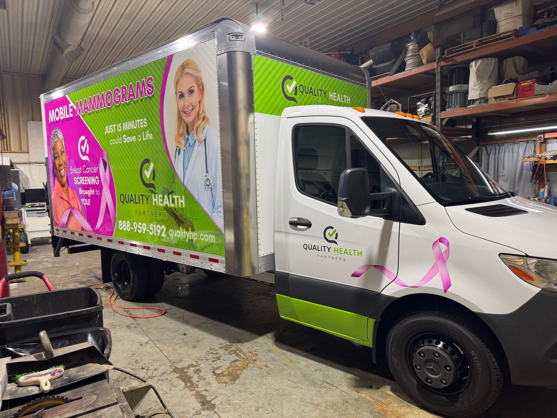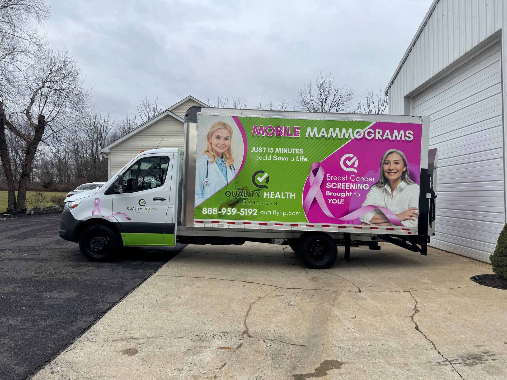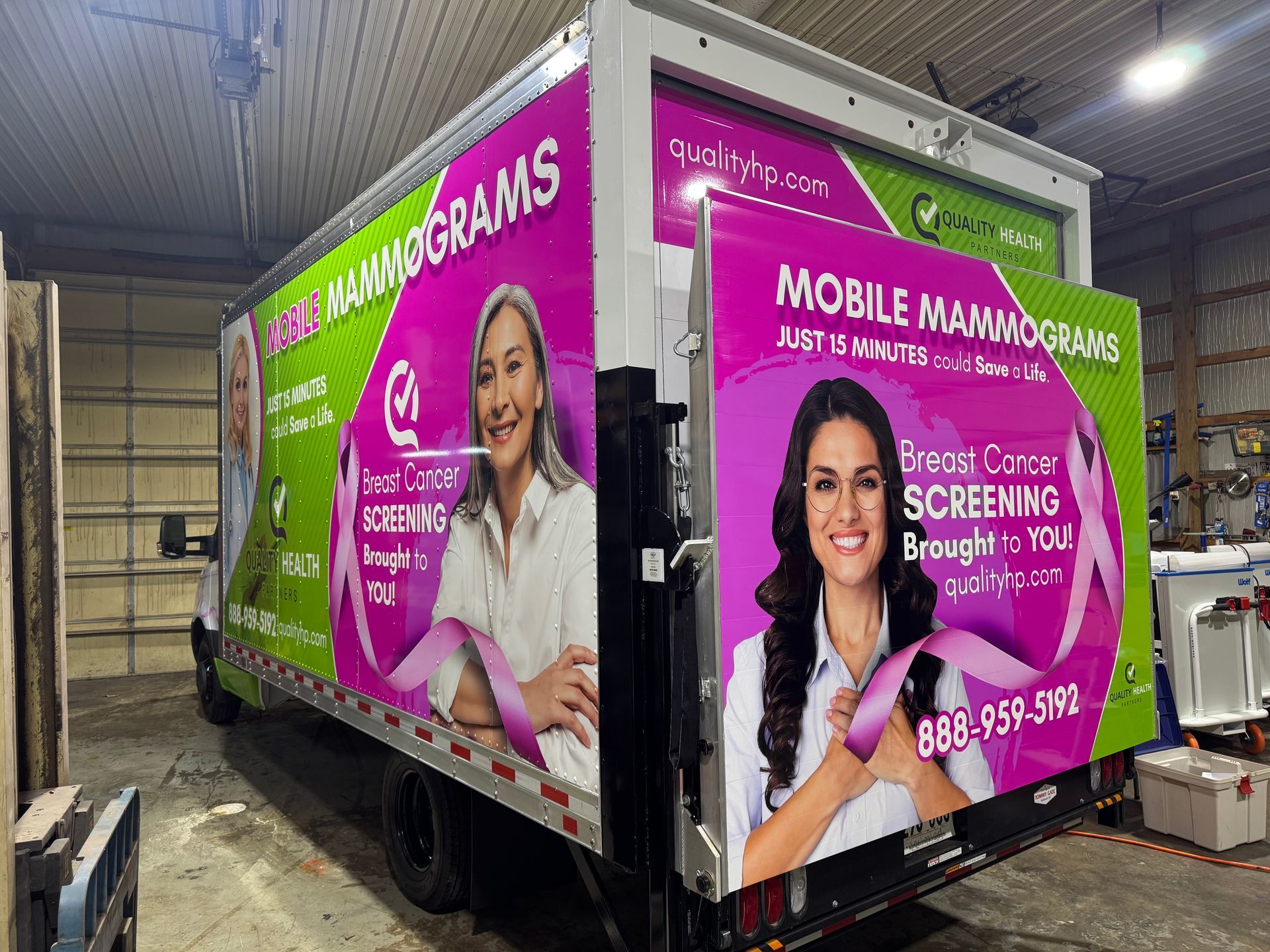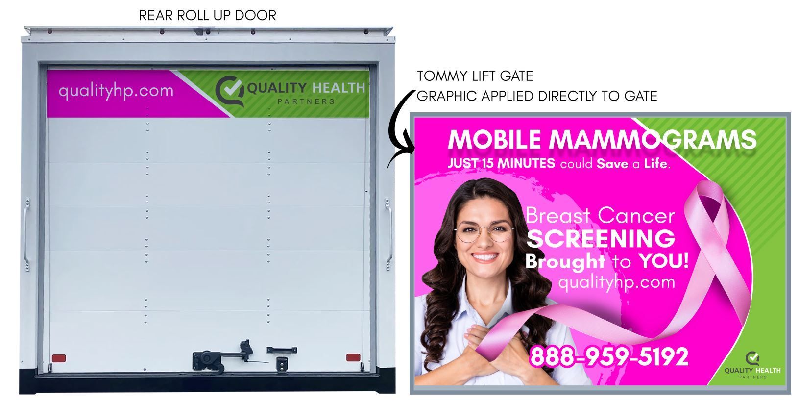 This was a great project and for a great cause. We were asked to create a mobile billboard for a mobile mammogram screening company from Quality Health Partners.